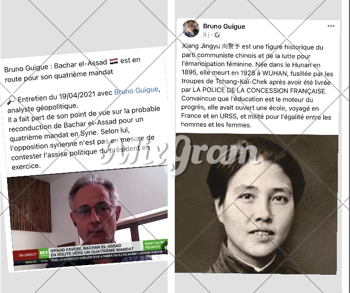 Généralement cette espèce d’intrus se situe, dans le cercle vicieux de la politique, à la jonction entre l’extrême gauche et l’extrême droite, comme le démontrent les publications de Guigue et sa proximité avec le RN alors qu’il est du PCRF ...